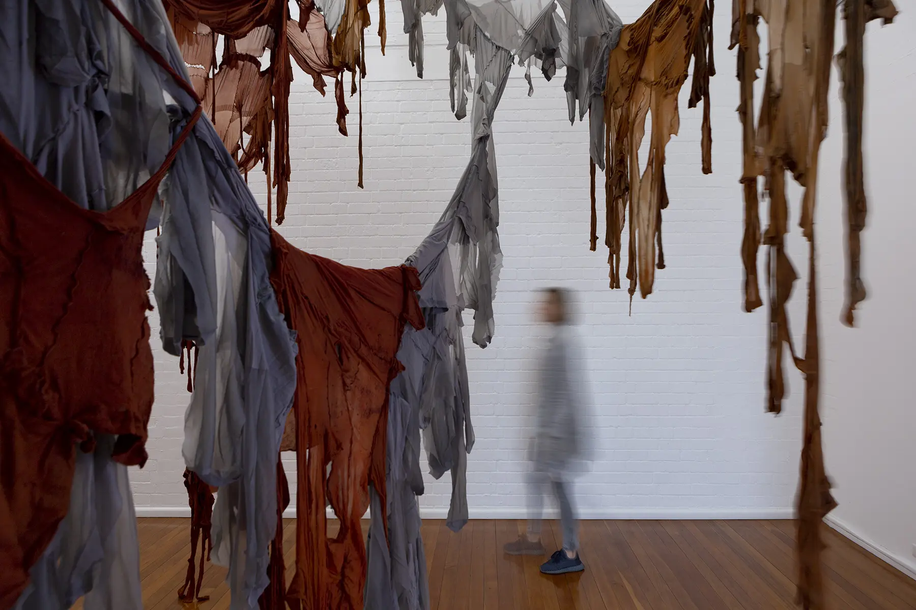 Her installation “She didn’t lick it off a stone” calls on the stylistic and emotional heritage of her art heroes Anish Kapoor, Louise Bourgeois, Pina Bausch, Mikala Dwyer and Eva Hesse meshed with the artist’s raw, deeply felt, acutely personal yet universal paean to the privilege, passage and enduring power of womanhood.